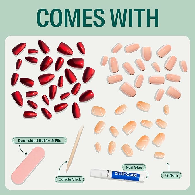 Chillhouse - Chill Tips Press on Nails Kit - She's the Prize Bundle (3-Pack) - 24 Nail Shapes & Sizes - Up to 3 Weeks Wear - Customizable Fit, Reusable - Latina Founded, Women Owned, Beauty, Self Care