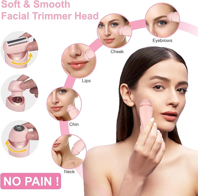 - 【Upgrade 2 IN 1 Electric Razors Kit】This women's electric shaver, featuring interchangeable heads for facial and body hair, offers a seamless grooming experience. Effortlessly swap between facial hair removal and body hair trimming heads with a simple twist and pull. Designed for versatility, this womens electric razor smoothly and effectively shaves hair on the face, arms, legs, underarms, and bikini area in minutes, leaving no residue behind. Perfect for a quick, all-around grooming routine.