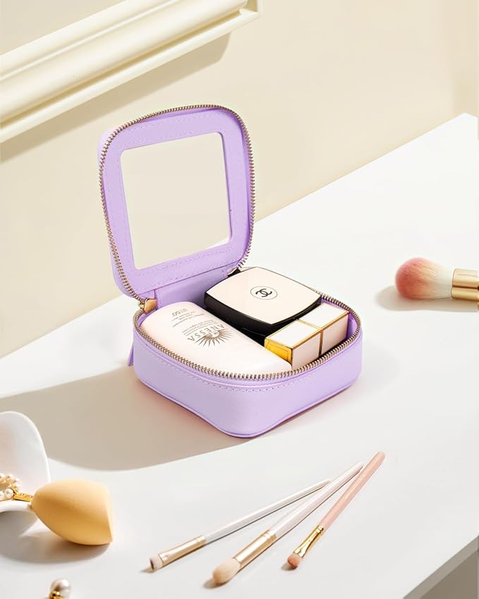 • Pick Quickly: TRAVEL TOILETRY CLEAR MAKEUP CASE designed with a clear PVC window can clear see you beauty cosmetics inside,all items at a glance,you can quickly select the required cosmetics. Size: 5.1“*5.1”*1.9“
