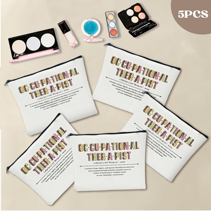 5 PCS Occupational Therapist Gifts Makeup Bag Occupational Therapy Gifts Therapist Gifts for Women Females Sister Nurse Coworker Graduation Retirement Christmas Cosmetic Bag Travel Toiletry Bag