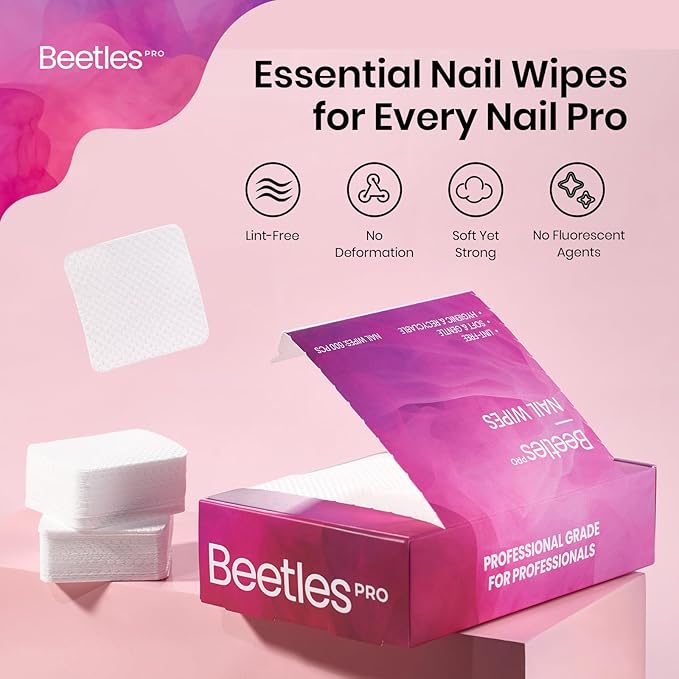 Beetles Professional Lint Free Nail Wipes: 600 Pcs Nail Polish Remover Pads Non-Woven Fabric Nail Cleaning Pads Soft Cleaning Wipes for Nail Care Salon at Home