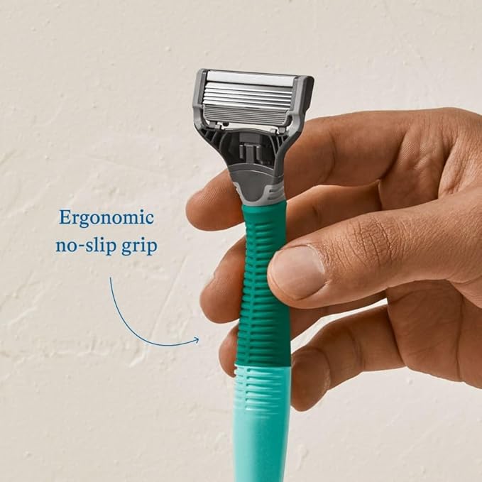 - 5-BLADE RAZORS: Two-tone Truman handle features an ergonomic, no-slip grip and weighted core; Each five-blade razor cartridge distributes pressure when shaving, helping protect against nicks