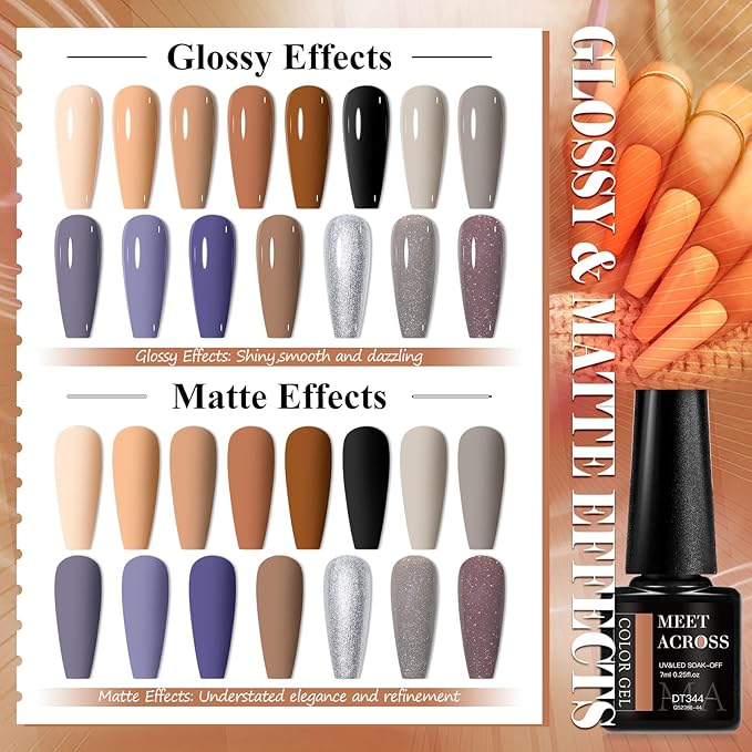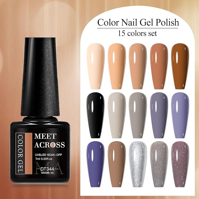 MEET ACROSS Brown Nude Gel Nail Polish Set Chocolate Gel Polish Kit All Seasons Gray Dark Tan Taupe Nail Gel Polish Soak Off UV Nail Design Home Diy Gift for Women 18pcs*7ml