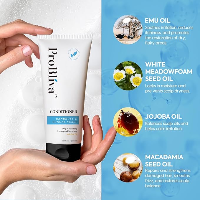 Dandruff Hair & Dry Scalp Conditioner: Deep Moisturizing & Soothing Relief with Natural Ingredients - Calms Itch Fungus Flakes, 10 fl. oz.