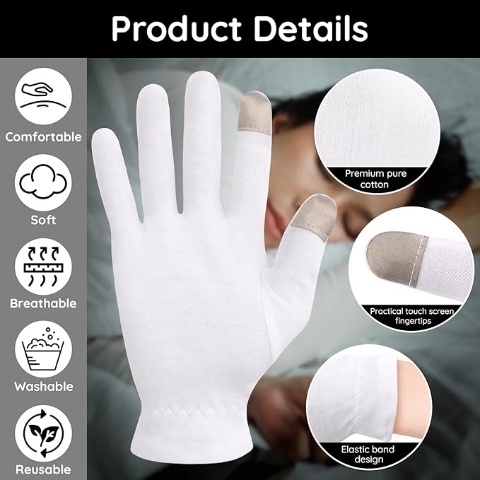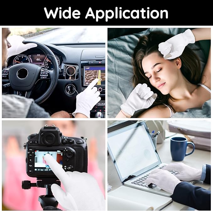 - Versatile Uses: These cotton gloves aren't just for moisturizing; they're great for handling delicate items like jewelry or photos to prevent dirt and fingerprints. As well as for use in performances, driving, and general cleaning