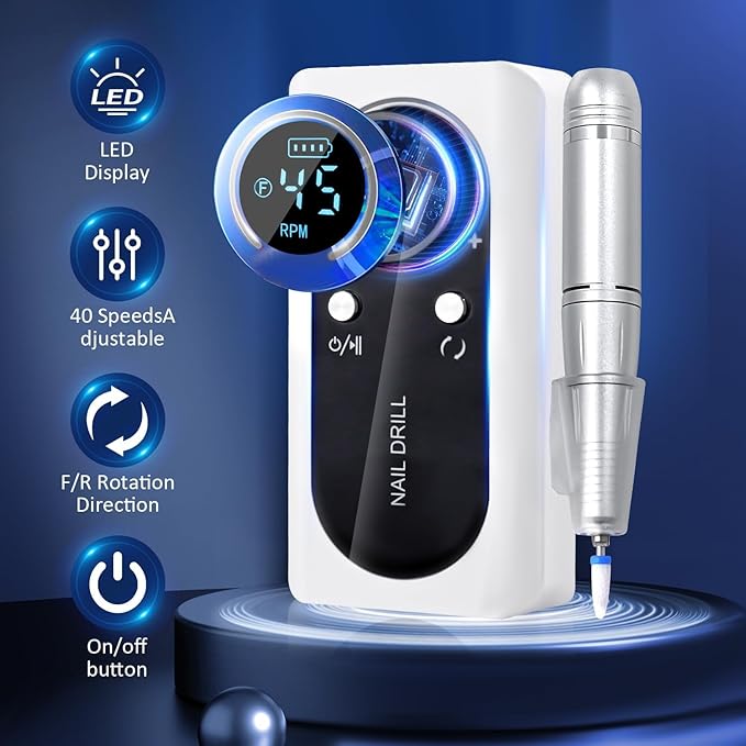 45000 RPM Electric Nail Drill LEDSUUEI: High Tech Professional Electric Nail File Fast Removal Nail Drill Kit for Acrylic Nails Gel Polishing Rechargeable Lightweight