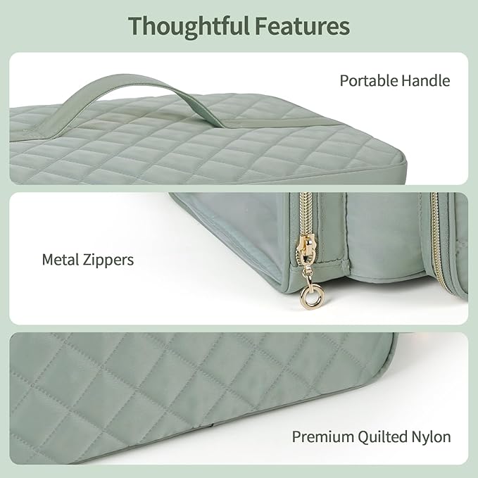 - 【Quality and Versatile】Our nail organizer is made of 5 layers of materials, the quilted nylon face material and polyester lining are both high-density, sturdy and durable for years of use. There is a separate nail storage bag inside and the middle divider is removable, so it can not only be used as a nail organizer and storage item, but also as a cosmetic bag or essential oil bag.