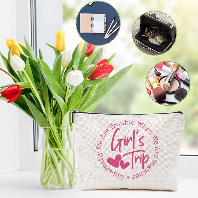 3Pcs Girls Weekend Gifts, 2025 Girls Trip Gifts Favors Travel Gifts Funny Makeup Bag, Weekend Bag Cosmetic Bag, Friendship Gifts for Women Sister Bride BFF, Graduation Wedding Gifts Toiletry Bag