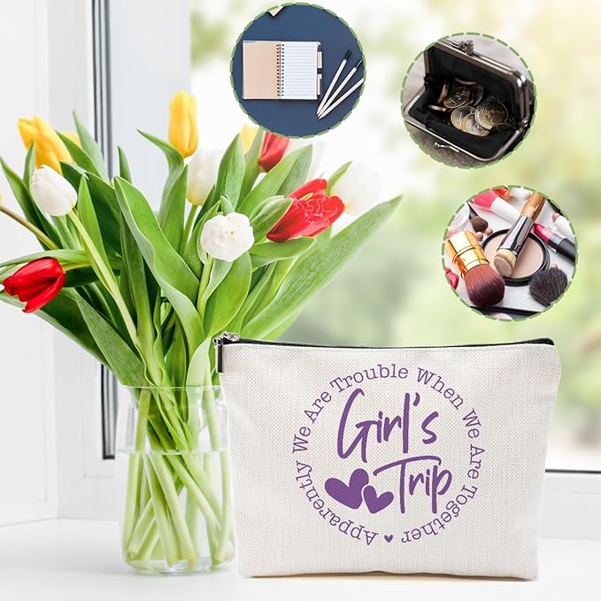 6Pcs Girls Trip Gifts Favors, Girls Weekend Gifts Makeup Bag, Bestie Gifts Weekend Bag Vacation 2025 Cosmetic Bag, Friendship Gifts for Women Her Bestie, Graduation Wedding Gifts Toiletry Bag