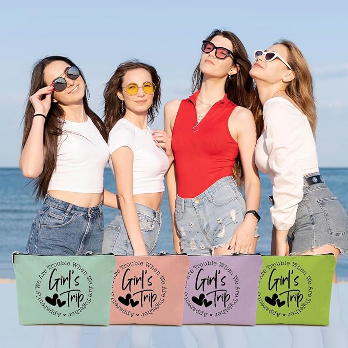 4Pcs Girls Trip Gifts Favors, Girls Weekend Gifts Makeup Bag, Vegas Gifts Weekend Bag 2025 End of Year Vacation Cosmetic Bag, Friendship Gifts for Women Friend, 2025 Vegas Souvenir Gifts Toiletry Bag