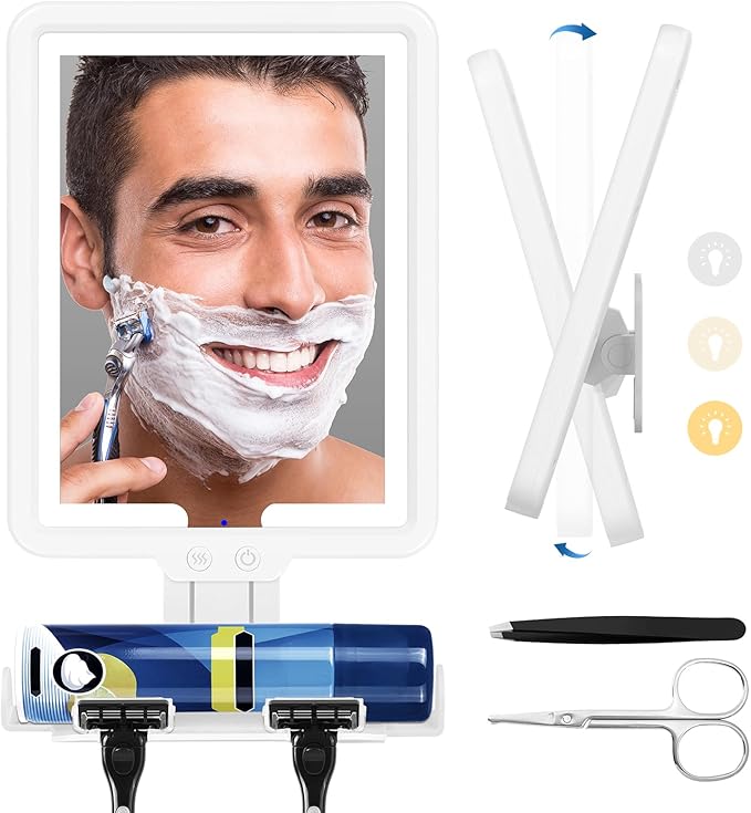 - 【3-Color Dimmable Lights】Fogless shower mirror with light has Cold, Natural and Warm 3-color lights with extreme color accuracy. Short press to change the light mode, long press to adjust the brightness steplessly. It has a memory function that can remember the lasted brightness.