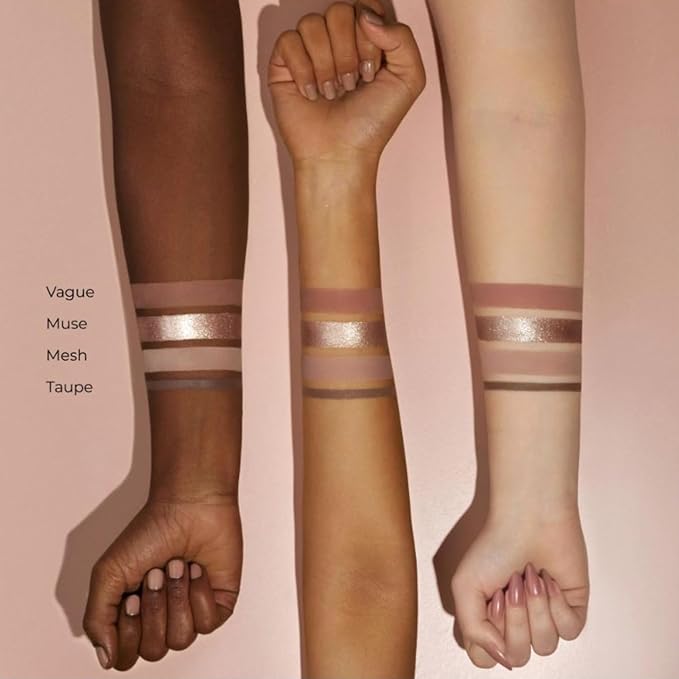 - The I NEED A NUDE Baby Palette features Muse, a champagne Sparkling Foiled shade, paired with Vague, a medium dusty rose hue and Mesh, a light taupe, both in the Creamy Matte finish.