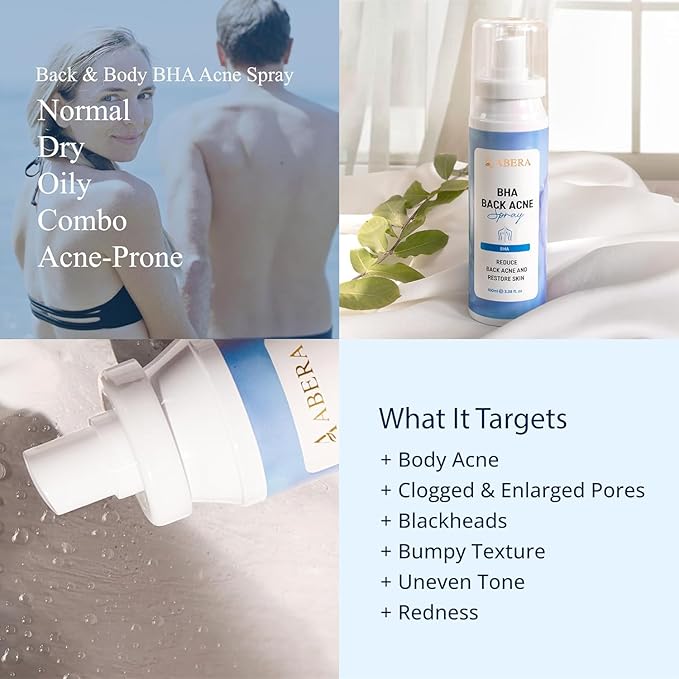 ABERA Folliculitis, BHA Shower Gel, High-Performance Folliculitis Body Wash, Wild Bitter Melon Extract, Reduces Back Acne & Hyperkeratosis,10,14 fl oz (2 Boxes + 1 BHA Back Acne Spray)