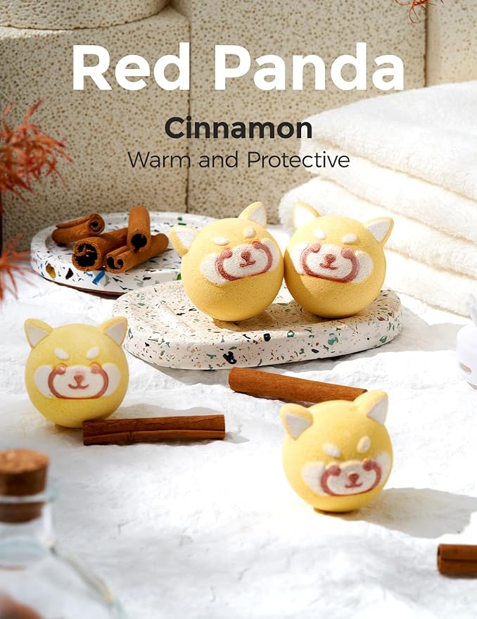 Momcozy Natural&Organic Essential Oil Bath Bombs,14 Pcs Bubble Bath Fizzy Balls with Red Panda Animal Shapes,Bath Bombs Gift Set for Kids Girls Boys Toddler,Ideal Gift for Easter Egg,Bath Bomb Kit