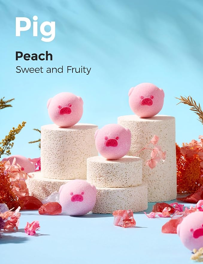 Momcozy Natural&Organic Essential Oil Bath Bombs,14 Pcs Bubble Bath Fizzy Balls with Cute Pig Animal Shapes,Bath Bombs Gift Set for Kids Girls Boys Toddler,Ideal Gift for Easter Egg,Bath Bomb Kit