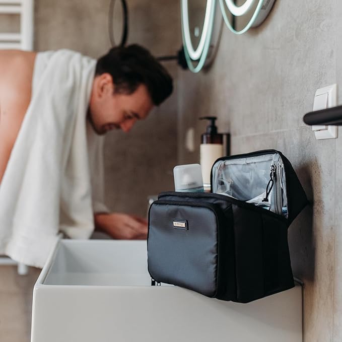 - Wide Flat Opening Design & Lightweight: This men's toiletry bag features a 180° wide-opening design for easy access; Weighing just 0.79 lbs and measuring 10 x 5 x 6.75 inches, it's compact and fits perfectly into your suitcase or backpack.