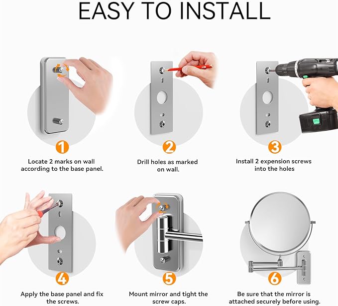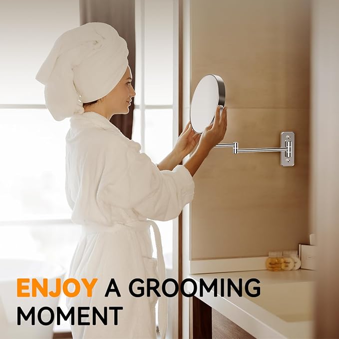 - 【360° SWIVEL EXTENDABLE】Our wall-mounted hanging magnification mirror features an 13 inches extending arm, allowing to choose your desired angle. When not in use, simply fold it up and tuck it neatly against the wall, keeping your space clutter-free