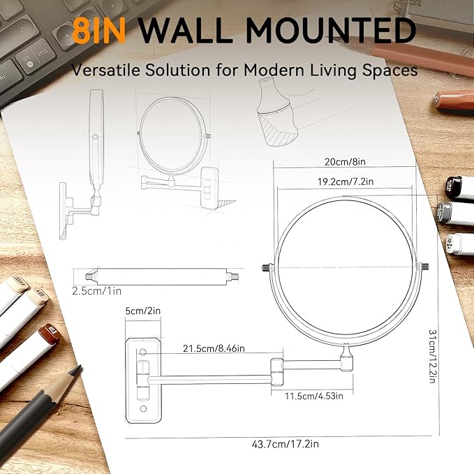 - 【HIGH-QUALITY WALL MIRROR】Auxmir wall mounted makeup mirror is made from premium stainless steel. It can resist rust, oxidation, and scratches. The 8 inch bathroom mirror ensures a distortion-free, razor-sharp reflection, allowing you to see every nuance of your face, blush, eyeliner
