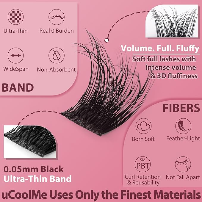 - Efficient Application with Fewer Clusters: Achieve a full look with just 12-14 clusters per application thanks to our wider band design; saves time and simplifies the process compared to traditional lashes needed 20-28pcs