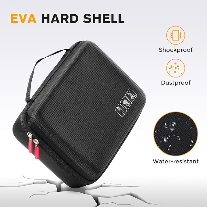 - Shockproof and water resistant hard EVA shell with soft lining offers great protection against impacts and dust