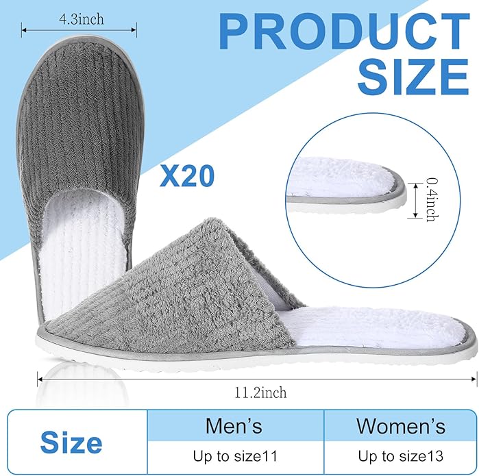 - Enough Quantity: with 20 pairs of closed toe slippers, this pack is ideal for hotels, spas, salons, conference centers, and more, ensuring you have enough comfortable footwear to accommodate guests and maintain a hygienic environment