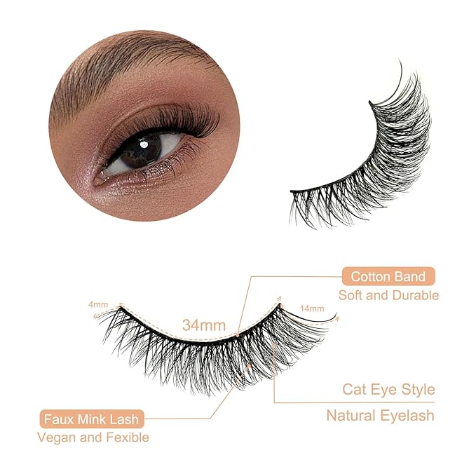 Cat Eye Lashes False Eyelashes Natural Look NINGLASH Wispy Lashes, Fake Eyelash 14mm Faux Mink Lashes Strips Eyelash 7 Pairs Natural Lash Pack