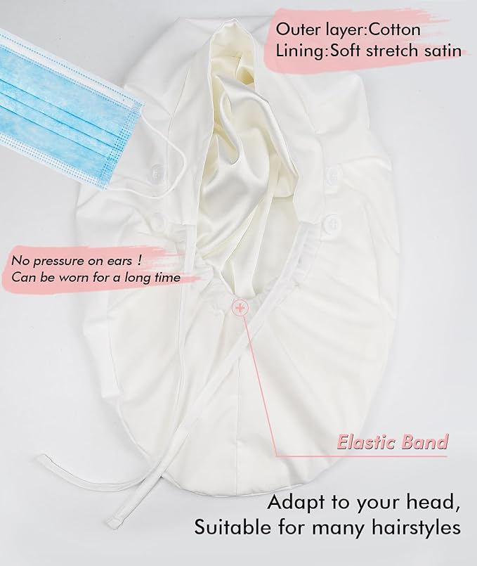 - Satin Scrub Cap for Types of Hair--Silky satin lined nurse cap is created for all types long hair:Dreadlocks,Long Braids,Frizzy,Flyaway,Straight.Soft satin helps retain the moisture in your hair, eliminates breakage while working. Keeps your hairstyle fresh and frizz free. Prevents tangles, breakage, and dry damaged hair during work