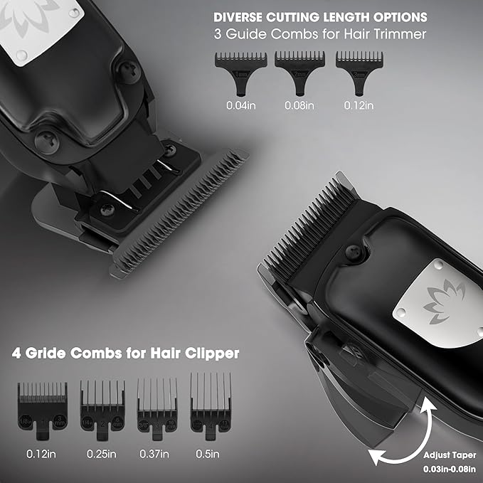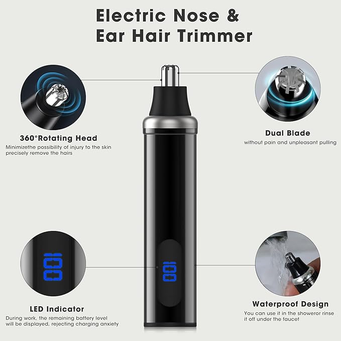 - 4 IN 1 MULTIFUNCTIONAL: The cordless clipper is fast and efficient, with an adjustable blade that easily cuts all hair types and lengths. The T-blade trimmer is perfect for precise trimming, grooming, sideburns, neck, beard lines, and men's shaving. The Shaver works well on dense, short, thick hair and the ultra-thin blade mesh gives a close shave.The nose hair trimmer has 360° rotary dual-blade system so you experience a clean and close cut.