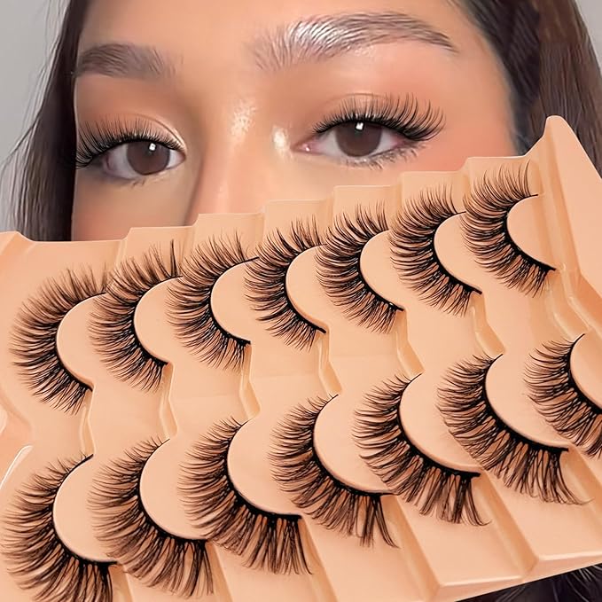 Cat Eye Lash Natural Look NINGLASH Wispy Lashes False Eyelashes Natural Look Fake Eyelash 14mm Faux Mink Lashes Strips 7 Pairs Lash Pack