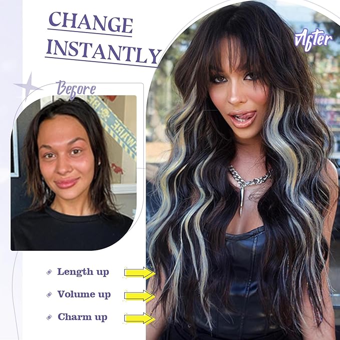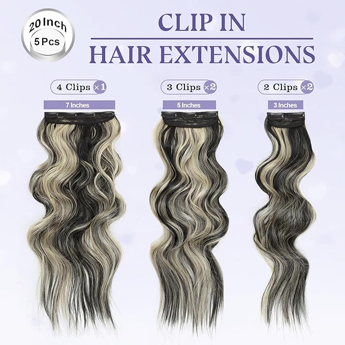 - 1.【Clip in Hair Extensions Material】The curly wavy clip in hair extensions is made of high-quality synthetic fiber, which makes them touched like human hair, very soft, smooth & natural, easy to comb. It is suitable for women and girls to change their hair length, volume and color instantly. Whether you're prepping for a romantic date, a fun night out, or just want to add extra length and volume to your everyday look, our clip-in hair extensions are an excellent choice.