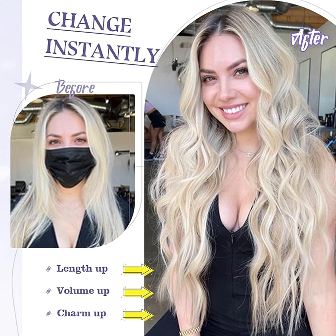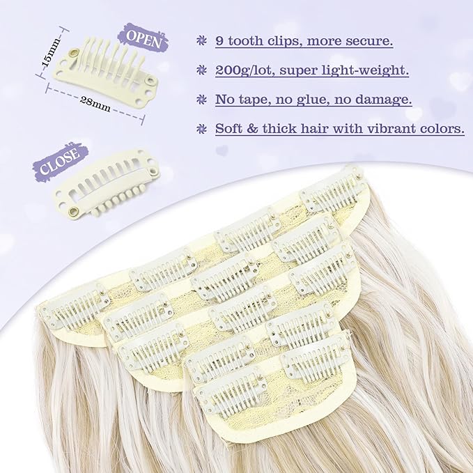 - 5. 【Clip in Hair Extensions Color Match】- A golden blonde with a balance of platinum blonde, it’s your lightest blonde without being completely platinum. WOKAA clip in hair extensions can blend well with your own hair. We suggest choosing color through your own hair ends. All products in this store are real shots, there may be slight color difference due to technology, display, light, environment, etc., please refer to the actual product.