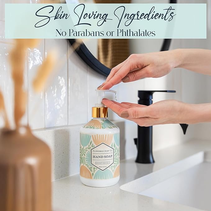 - Four aroma-rich scents of Wildflower, Lily of the Valley, Honeysuckle, and Cherry Blossom for a flower fresh experience. Flower Box fragrant hand wash will add beauty and function to any room.