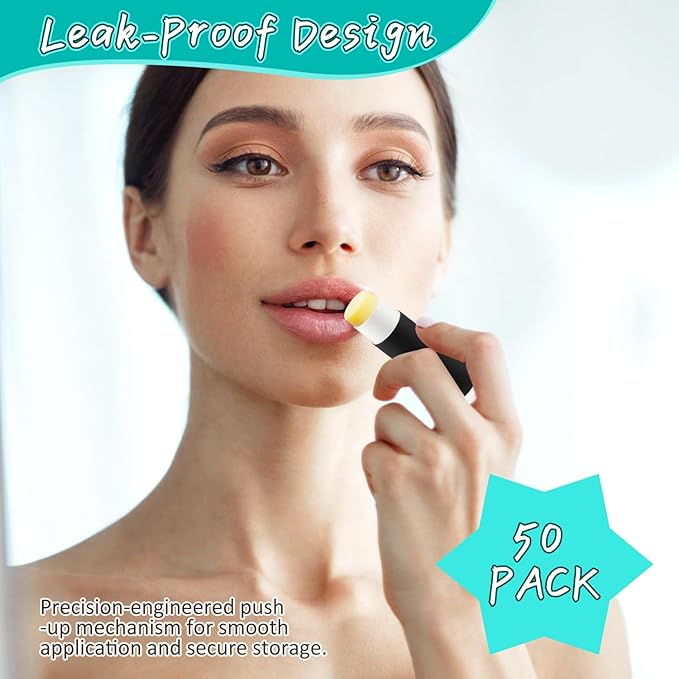 50 Pcs 0.3 oz Paperboard Lip Balm Tube,Empty Kraft Paper Chapstick Tube Holder,Push-Up Style Biodegradable Solid Perfume Lip Gloss Container for DIY Homemade Balm,Non-Plastic Container- Black