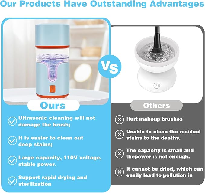 - ๐๐๐ค๐๐ณ ๐๐จ๐ฐ๐๐ซ๐๐ฎ๐ฅ ๐๐ฅ๐ญ๐ซ๐๐ฌ๐จ๐ง๐ข๐ Our makeup brush cleaner features a fully automated cleaning process, eliminating manual scrubbing and saving you valuable time. With its powerful 40kHz ultrasonic technology, it ensures a deep and efficient clean, keeping your brushes in impeccable condition. Regular deep cleaning not only extends the lifespan of your brushes but also maintains their optimal performance. Ultrasonic ensures a deep and efficient clean, keeping your brushes impeccably clean.