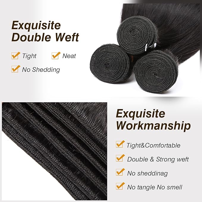 - Bundles Human Hair Advantage:Unprocessed Remy Human Hair Bundles Raw Human Hair Bundles. Double Machine Weft, Very Soft And Silky, Full Density, Thick Ends, Bouncy And Shiny Hair Weft With High Elasticity, One Direction Cuticle With No Split Ends,Tangle-Free, Minimal Shedding, No Chemical Treatment.