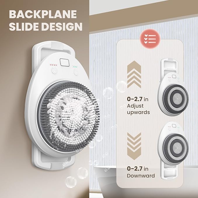 - IPX7 Waterproof: Our shower back scrubber wall mounted with IPX7 waterproof rating, it is safe to use even in humid environments. Electric back scrubber wall-mounted design to prevent accidental falls, easy to install, safe and convenient.