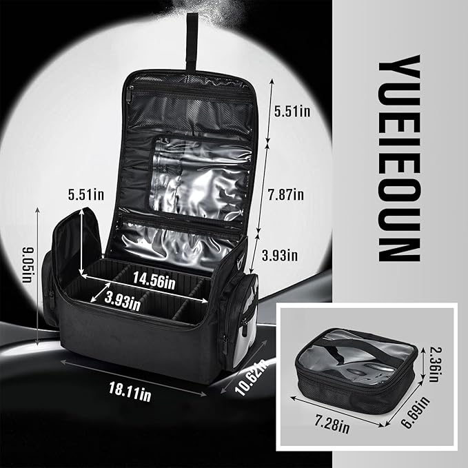 - 🌟 Spacious & Customizable Design – This 18.1-inch extra large makeup bag offers ample space for cosmetics, tools, and accessories. Features 7 removable EVA dividers to organize palettes, brushes, and bottles securely. Ideal for professional makeup artists, hairstylists, and nail technicians.