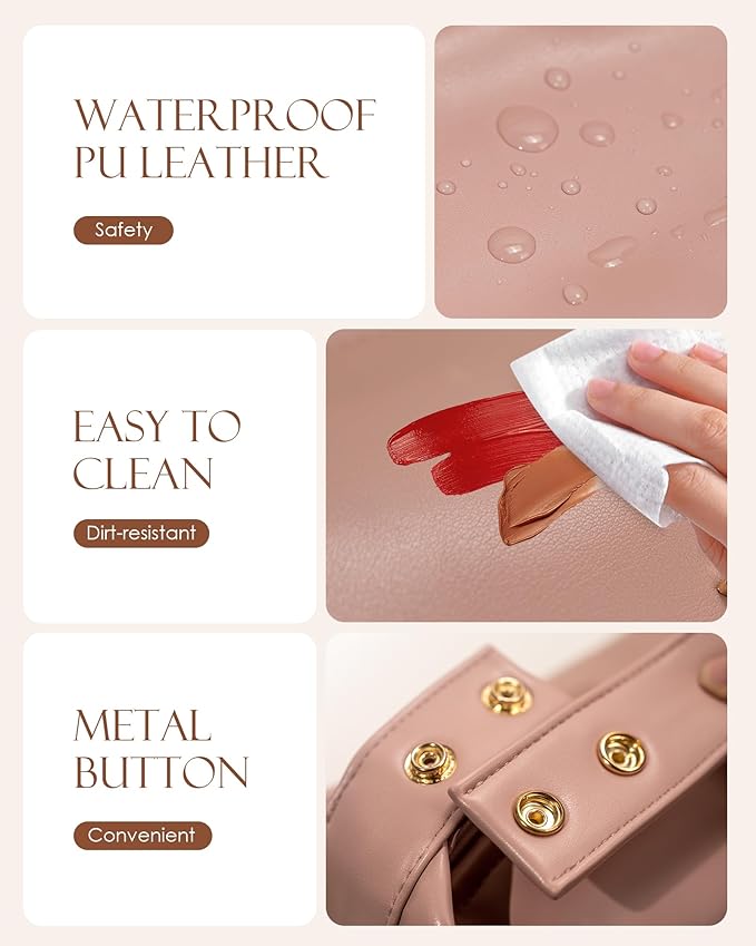 - 【Premium Materials】Our travel toiletry bag is made of soft, lightweight, high-quality pu leather fabric to protect your cosmetics from scratches. It is also waterproof, so you don't have to worry about water splashing on it while washing your hands.