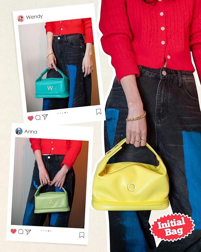 - 【Double-layer Design】The monogrammed makeup bags is double-layer with a unique design of upper and lower storage areas. The bottom compartment is great for storing cosmetics, eye shadows, makeup brushes, and other items. The top layer features a large opening for easy access, along with two small compartments for lipsticks and earrings.