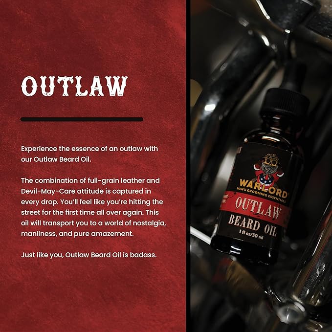 - Potent & Nostalgic Scent - Outlaw - Turn your beard into a time machine because real men’s grooming kits deserve classic swagger and beard-softening magic. Channel your inner rebel with the bold scent of leather and a devil-may-care attitude. Outlaw Beard Oil is the fragrance of freedom, manliness, and adventure. It’s the perfect choice for the man who’s ready to break the rules and carve his own path.