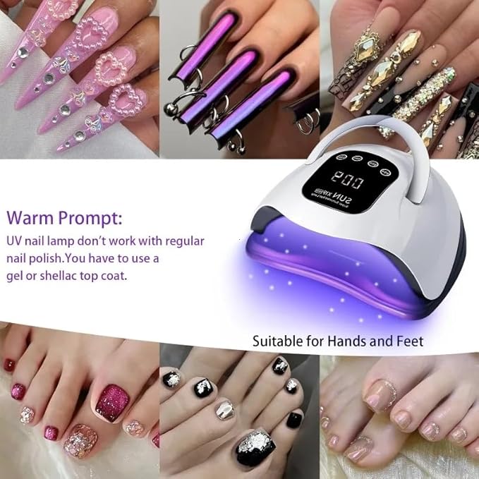 - [4 Timing Settings & Smart Sensor] This innovative Led nail lamp includes 4 adjustable timers (10s, 30s, 60s, 99s) for various gel polishes, along with a large LCD display for clear time tracking and an infrared auto-sensor for effortless on/off functionality.
