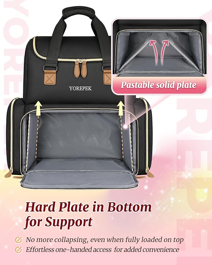 - Solid Plate in Bottom for Support: Premium to other double-layer nail polish organizers, this upgraded nail polish storage features 2 innovative side pastable solid plates at the bottom; 2 support plates reinforce the structure, preventing the top compartment from collapsing even when fully loaded; Thoughtful design allows you to access 2 removable pouches with one hand effortlessly; A convenient, user-friendly upgrade for nail supplies organizer