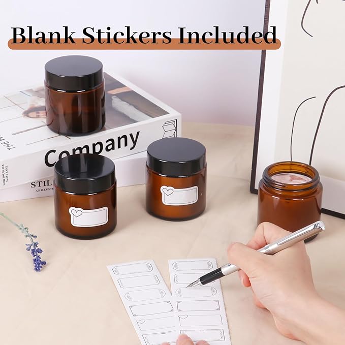 - PREMIUM AMBER GLASS CONSTRUCTION: Crafted from thickened food-grade glass, these amber glass jars with lids are free of lead and BPA for safe storage of edibles, body butters, and candle-making materials 100% recyclable amber hue blocks UV rays to protect light-sensitive contents