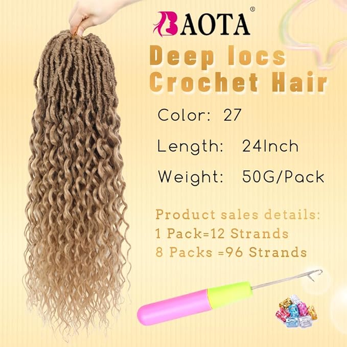 8 Packs Goddess Locs Crochet Hair 24 Inch Faux Locs With Curly Ends Pre Looped Crochet Hair for Women Blonde Color Deep Wave Soft Locs Honey Blonde 27 Color