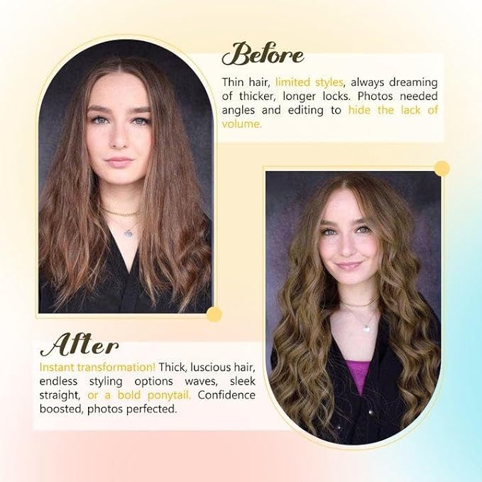 - Easy to wear and perfectly invisible on the head: This hair extensions real human hair hair is very simple and convenient to wear. The real human hair clip does not tangle or fall off. It perfectly covers the entire head. The color of the clip matches the top of the hair, which is more invisible and more natural. You can easily get the same hairstyle as the hair salon at home.