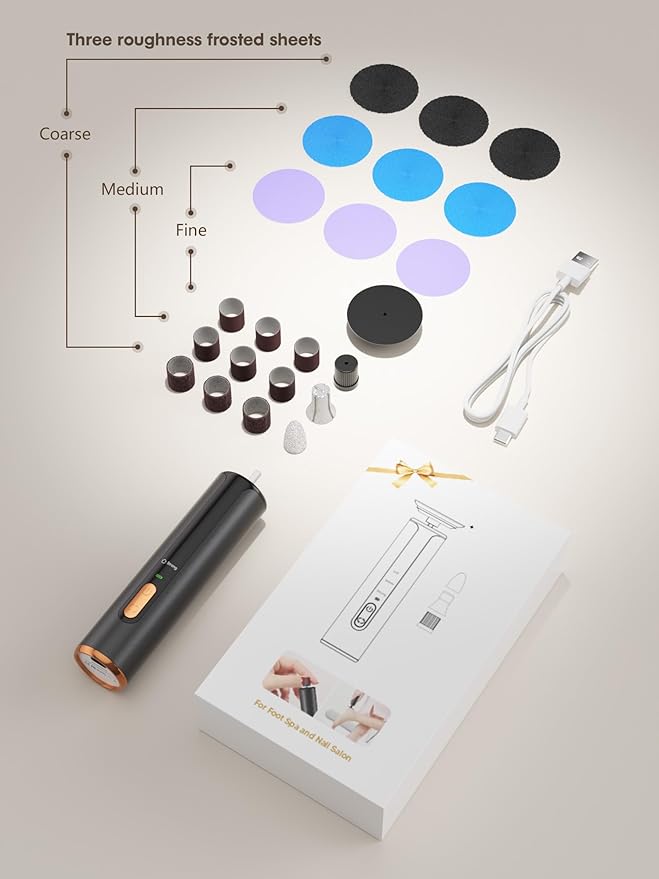 - Ergonomic handle design - Electric foot file is portable, practical and stylish, which allows users to perform foot spa at home, removing dead skin and calluses, bringing users beautiful feet and saving their time. Therefore, it is definitely the best gift for people who need to remove dead skin, calluses and manicure.