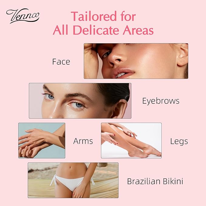 - Superior Hair Removal: Whether targeting the bikini area, face, or full body, VENNCO hard wax beads for hair removal grip both coarse and fine hairs effectively. Our formula offers a comprehensive solution for Brazilian waxing, facial hair removal, and more, ensuring complete hair removal without the need for multiple products