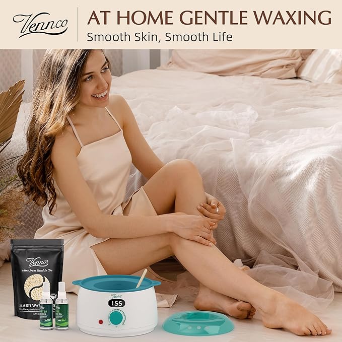 - Low Melting Point for Comfortable Application: Vennco wax beads melt at a lower temperature, providing a comfortable application that reduces the risk of burns. This feature is especially beneficial for those with sensitive skin, ensuring a pain-reduced waxing experience without sacrificing efficacy