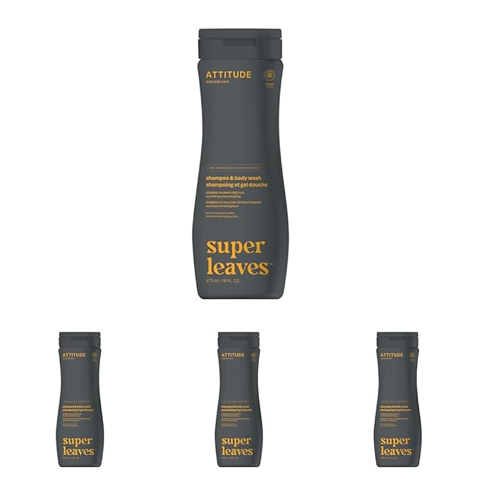 ATTITUDE 2-in-1 Body Wash and Hair Shampoo, EWG Verified Shower Gel, Dermatologically Tested, Made with Naturally Derived Ingredients, Vegan Personal Care, Ginseng and Grapeseed Oil, 16 Fl Oz