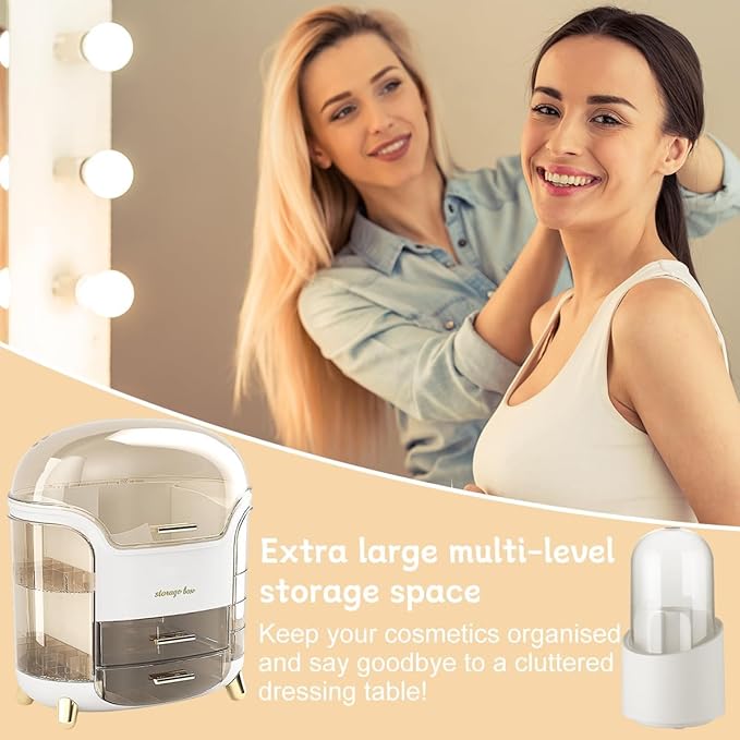 Makeup Organizer for Vanity, Skincare Organizer, Makeup Storage Drawers, Cosmetics Organizer with Lid, Makeup Brush Holder Rotating, Dressing Table Organizer, Large Makeup Box(White)